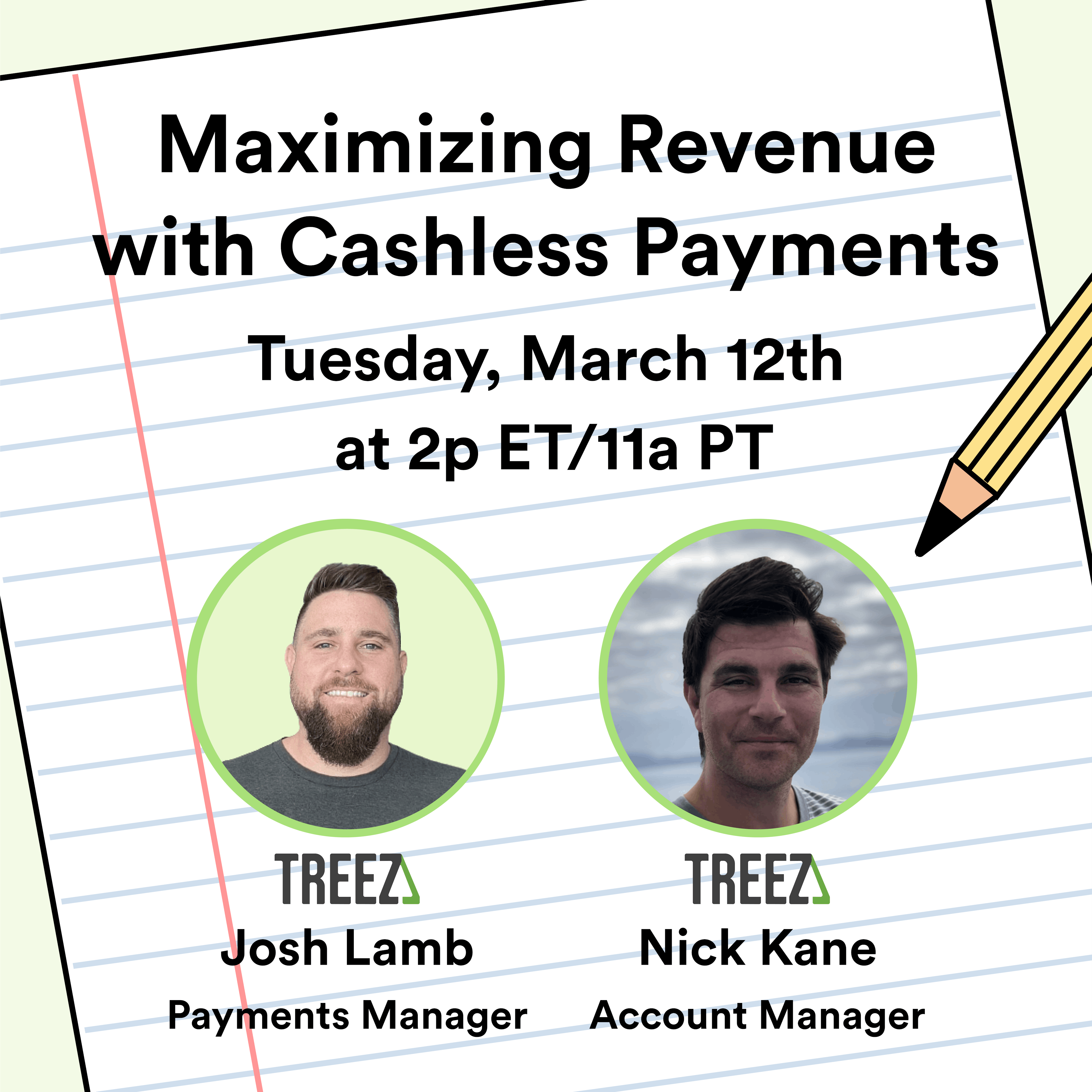 Treez payments experts Josh Lamb and Nick Kane will be sharing data, insights and advice Tuesday, 3/12 and answering your questions of cashless payments.