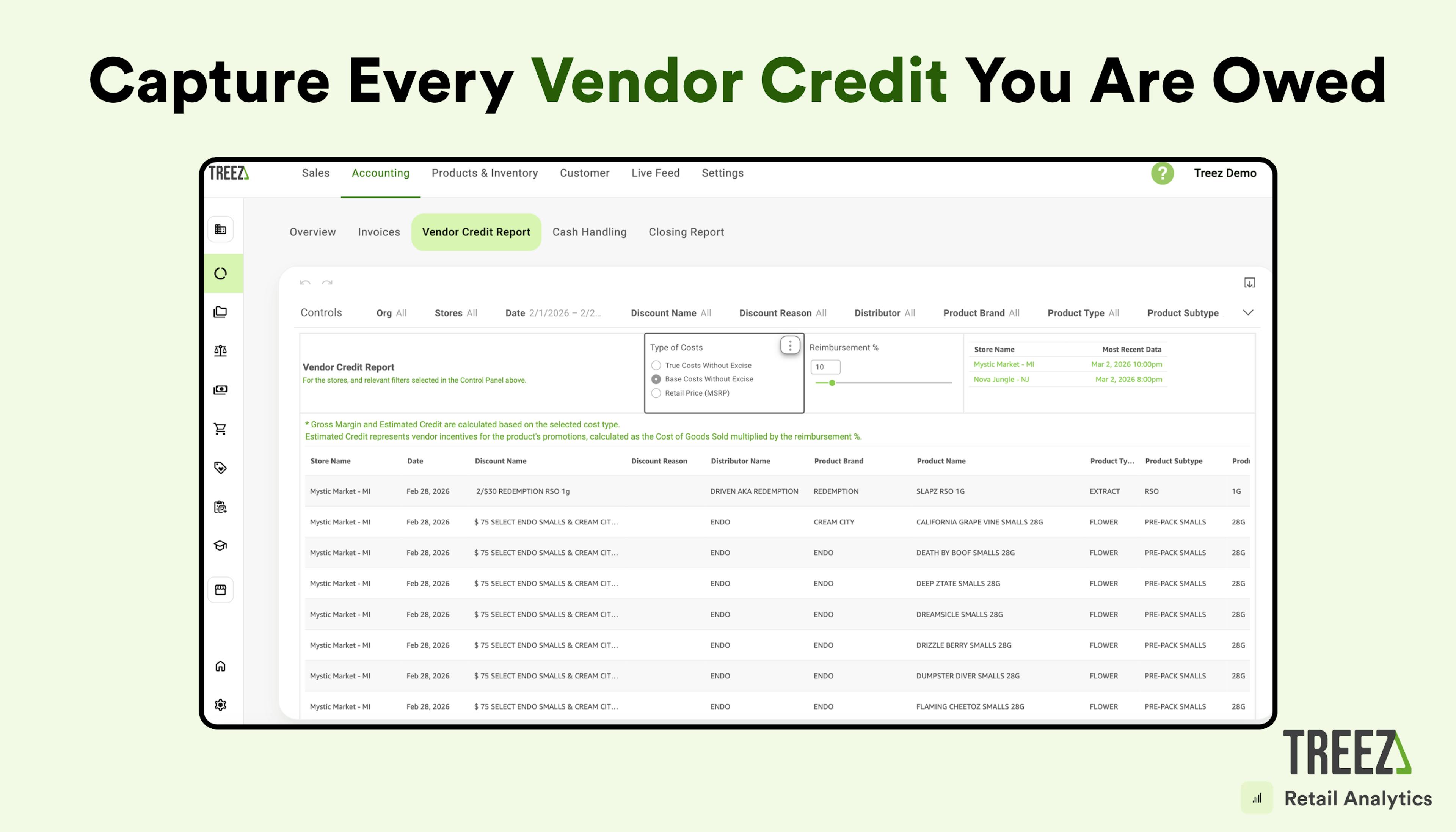 Stop Leaving Vendor Credits on the Table: How Treez Retail Analytics Helps Dispensaries Capture Every Dollar They’re Owed